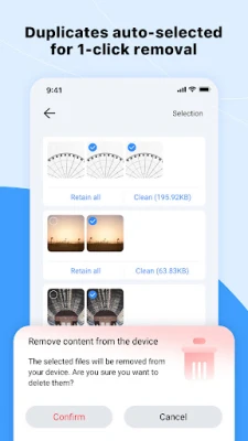 După ce Cisdem Duplicate Finder a identificat duplicatele și imaginile similare, gestionarea acestora devine un proces simplificat. Aplicația propune o selecție automată inteligentă, marcând pentru ștergere toate fișierele redundante dintr-un set, păstrând în siguranță un singur exemplar. Ai la dispoziție reguli de selecție prestabilite, pe care le poți personaliza, dar și libertatea de a alege manual fiecare fișier. Această flexibilitate se aplică și în cazul fotografiilor similare, unde Cisdem Duplicate Finder oferă reguli pentru a te ajuta să le elimini pe cele de prisos. Odată confirmată selecția, cu o singură atingere, spațiul tău de stocare este eliberat instantaneu, fără riscuri, deoarece aplicația solicită întotdeauna confirmarea înainte de orice acțiune de ștergere. Interfața simplă și intuitivă, combinată cu viteza mare de scanare, face din Cisdem Duplicate Finder instrumentul ideal pentru o curățenie regulată și eficientă a dispozitivului.